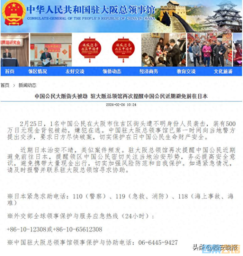 一中国公民在大阪街头遭不明身份人员袭击抢包,被抢走500万日..