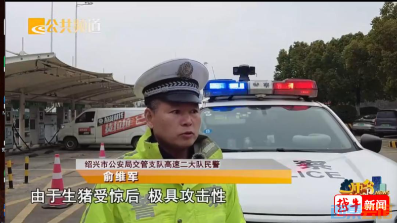 惊险一幕!“二师兄”闯入绍兴高速,与小轿车正面相撞