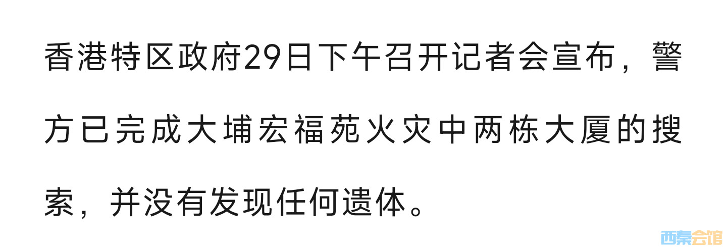 香港警方已完成宏福苑两栋大厦搜索 未发现遗体