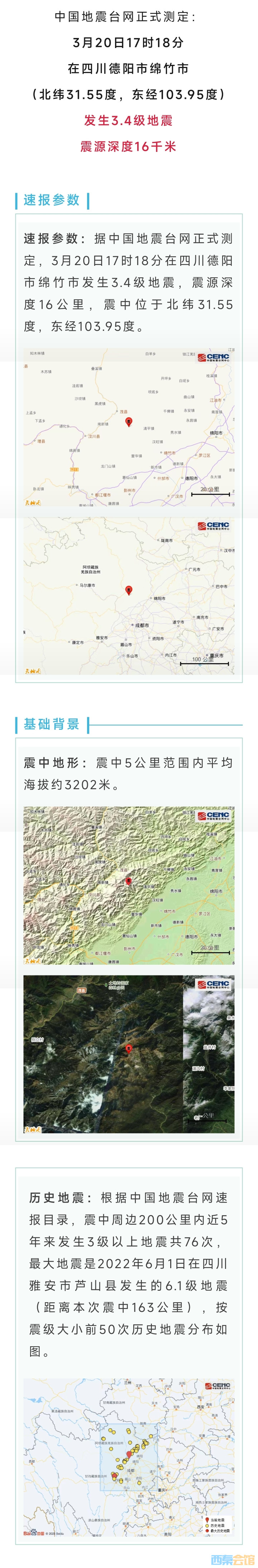 四川绵竹县发生3.4级地震