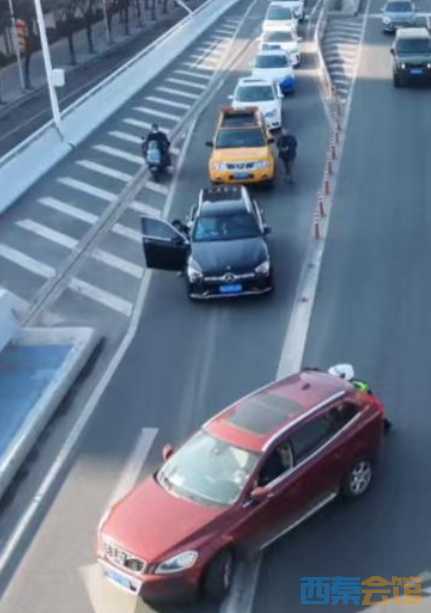 小车突发故障阻滞返乡车流,无人机拍下交警和路过驾驶员奋力推车..