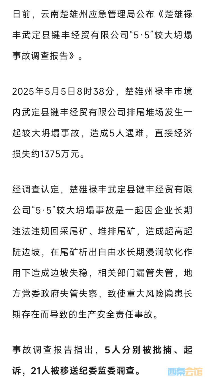 云南禄丰“5·5”坍塌事故调查报告公布