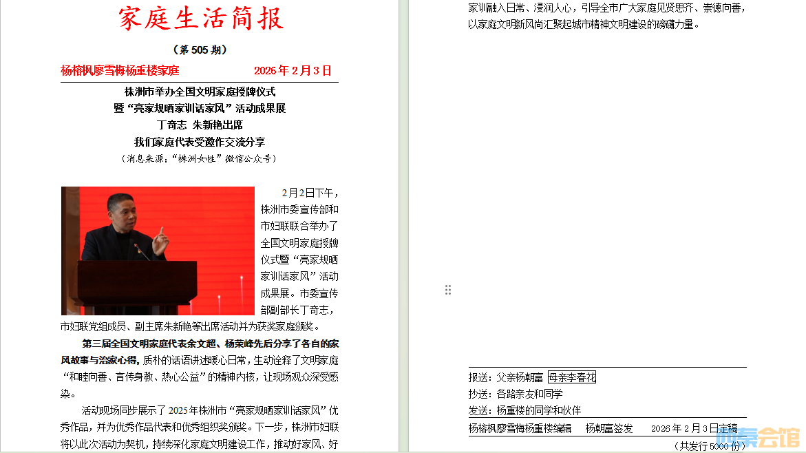 杨榕枫家庭生活简报第505期