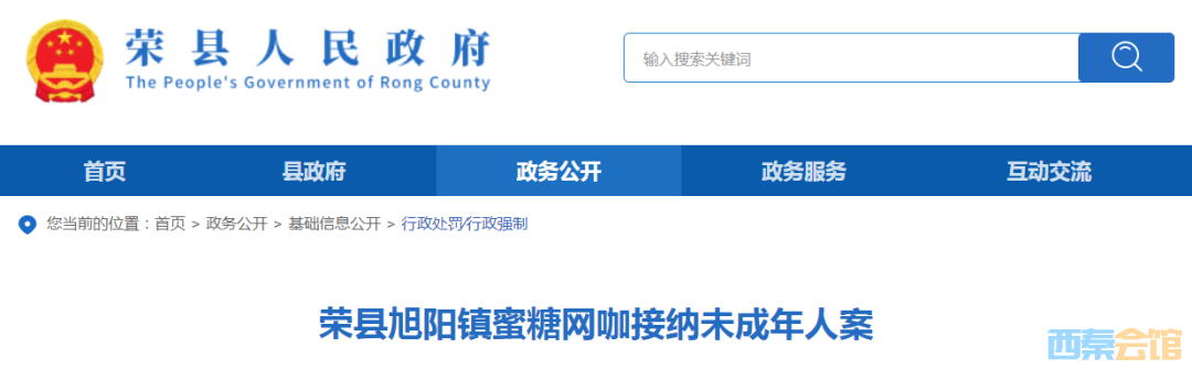 涉未成年人,荣县一网咖被罚1万元
