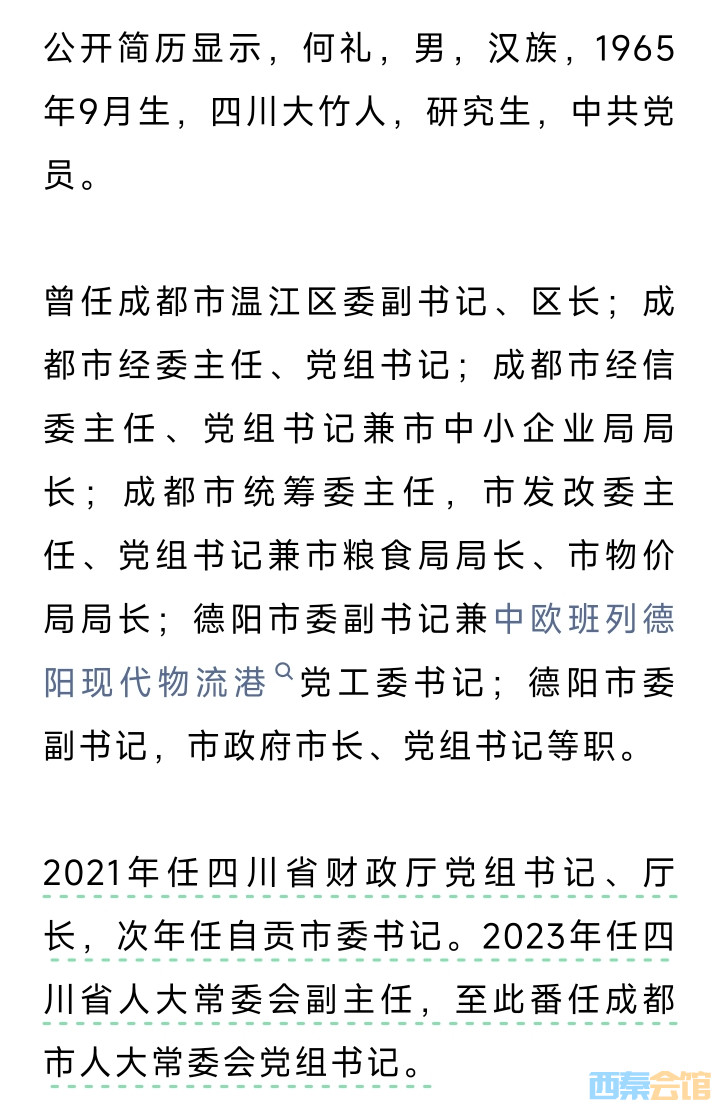 何礼(2022年任原自贡市委书记)任成都市人大常委会党组书记..