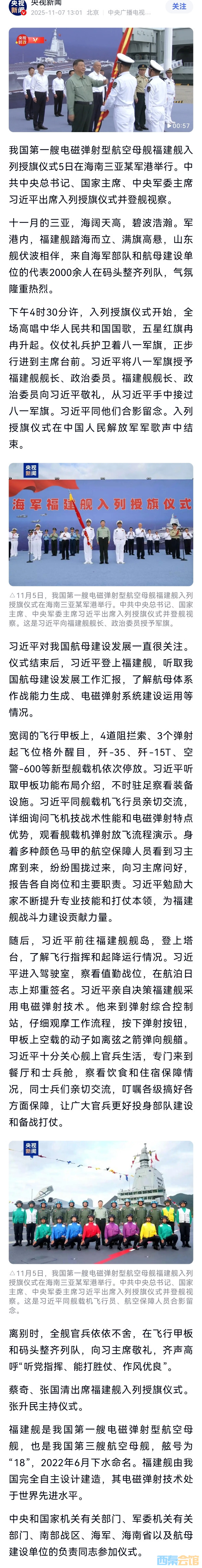 我国第一艘电磁弹射型航空母舰入列,习近平出席入列授旗仪式并登..