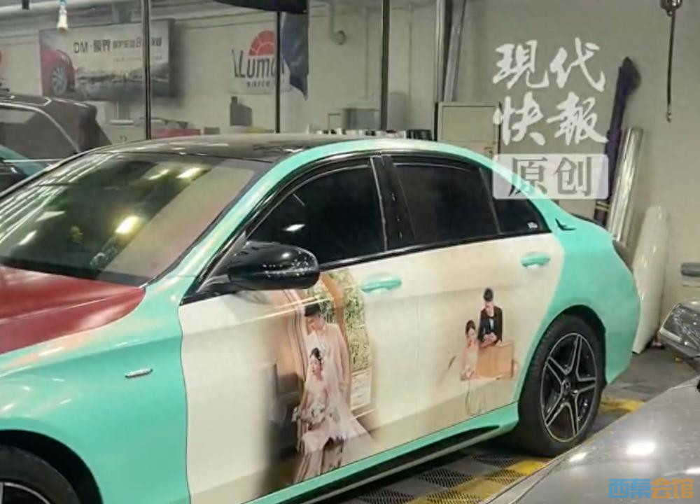 四川一男子将婚纱照贴满奔驰车身引热议,当事人回应:为了给妻子..