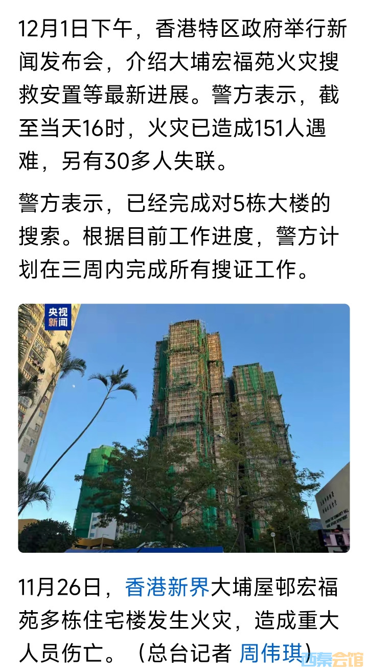 香港大埔火灾己致151人遇难 30多人失联