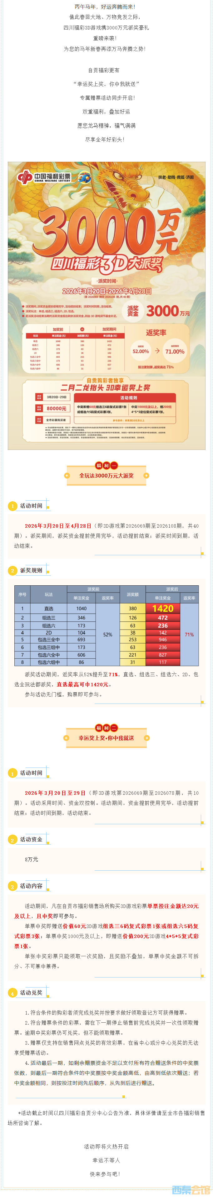 二月二龙抬头,四川福彩3D游戏3000万元大派奖重磅来袭!