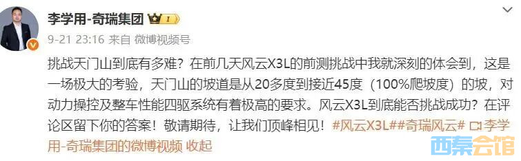 奇瑞汽车就天门山挑战测试意外致歉