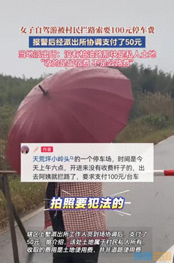 女子自驾游被村民拦路索要100元停车费,报警后经派出所协调支..
