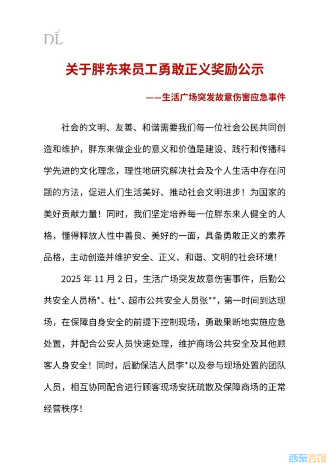 胖东来奖励20名见义勇为员工共计20万元!第一时间处置施暴者..