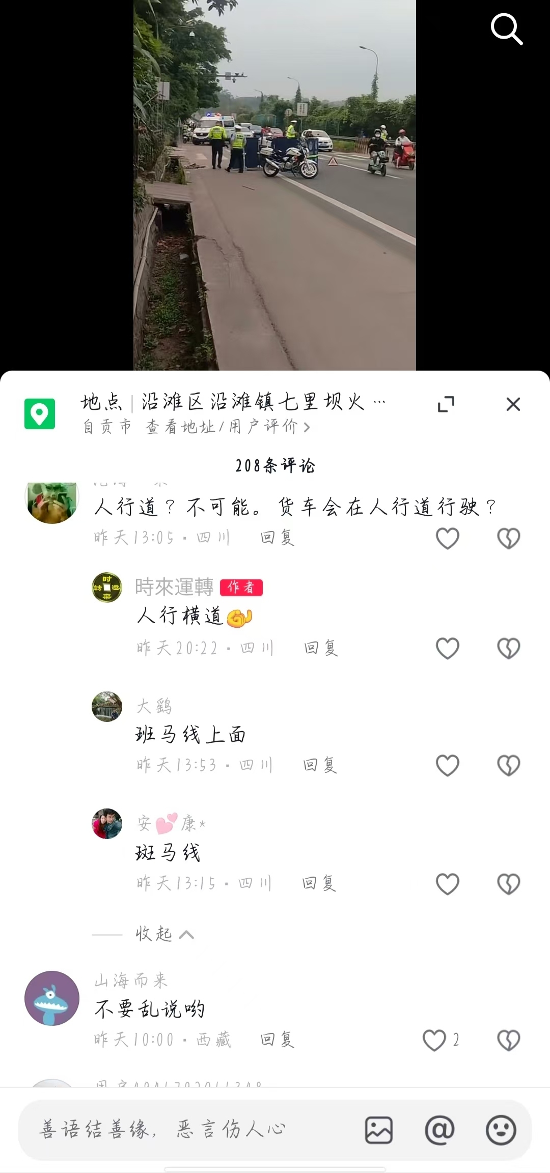 昨天,沿滩胡家桥斑马线上一辆货车撞到一个老人