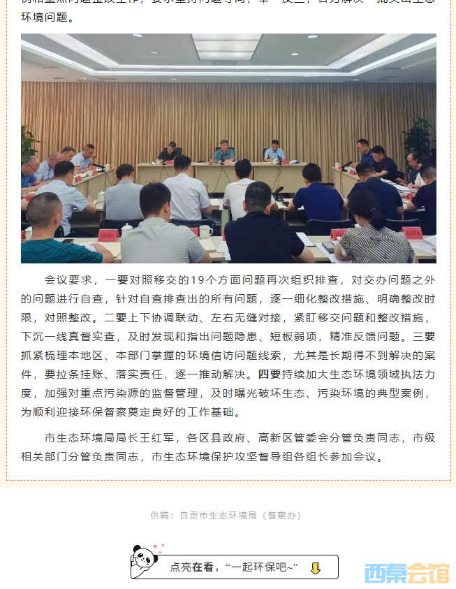 自贡市召开省上移交生态环境突出问题整改推进专题会