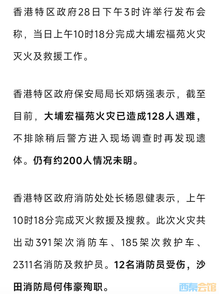 香港大埔火灾灭火救援工作完成 仍约有200人情况未明