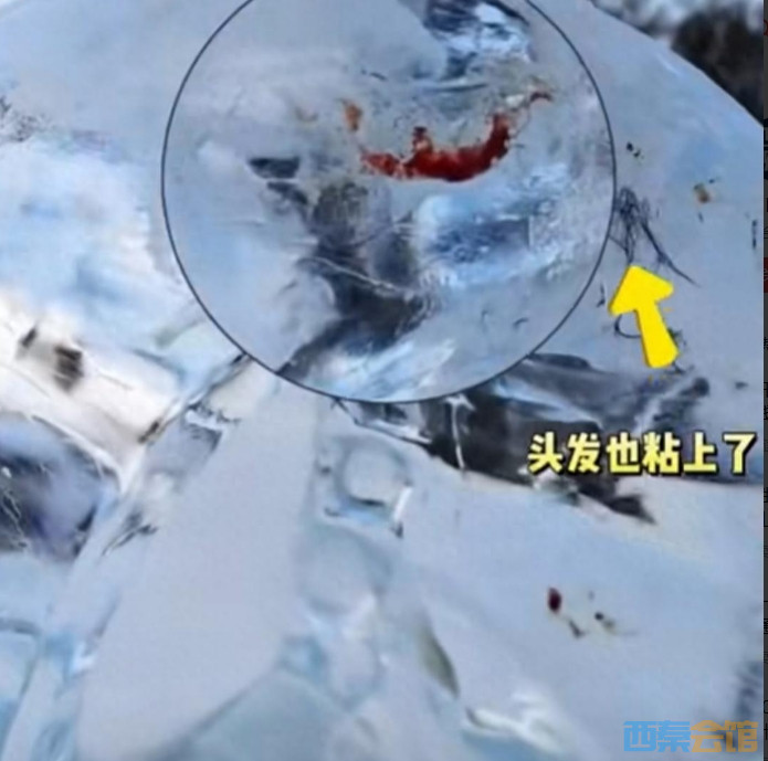 黑龙江哈尔滨一冰雕上留有多处血印