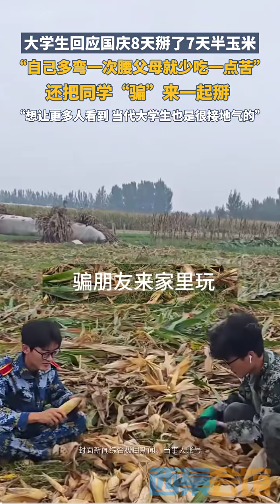 回家掰玉米走红网络父母嘱咐:低调今年,孟成考入青岛农业大学,学习计算机科学与技术专业。这个国庆节,是他大学后第一次回家。连日的降雨,收割机无法进入农田,成熟的玉米只能靠人工收割,如果发霉腐烂,父母半年的辛苦白费。