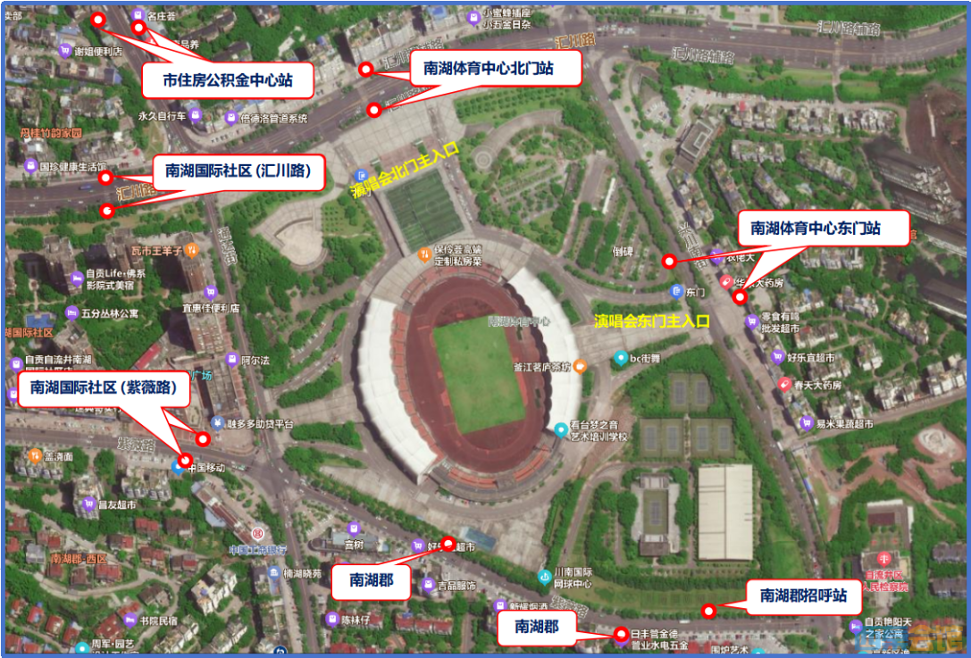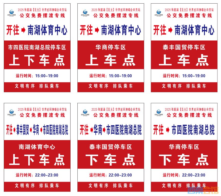 我们为市内不同方向的歌迷准备了三条快速直达的文旅专线 ,从南湖体育中心一站直达核心区域!
