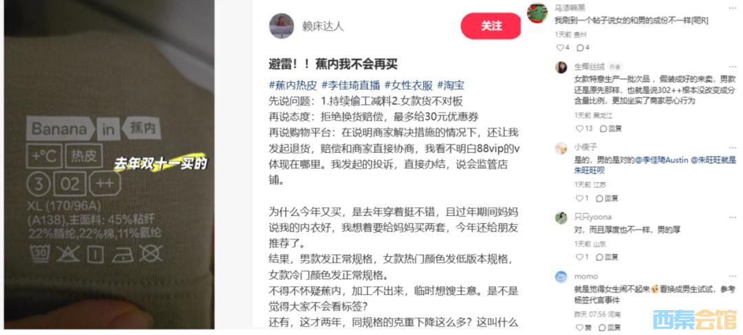 更为关键的是,引发争议的产品并非强调款式、时尚的外搭单品,而是款式高度相似、功能诉求极为单一的基础保暖内衣。在这一品类中出现明显的品质差异,迅速触动了消费者对于公平的敏感神经。