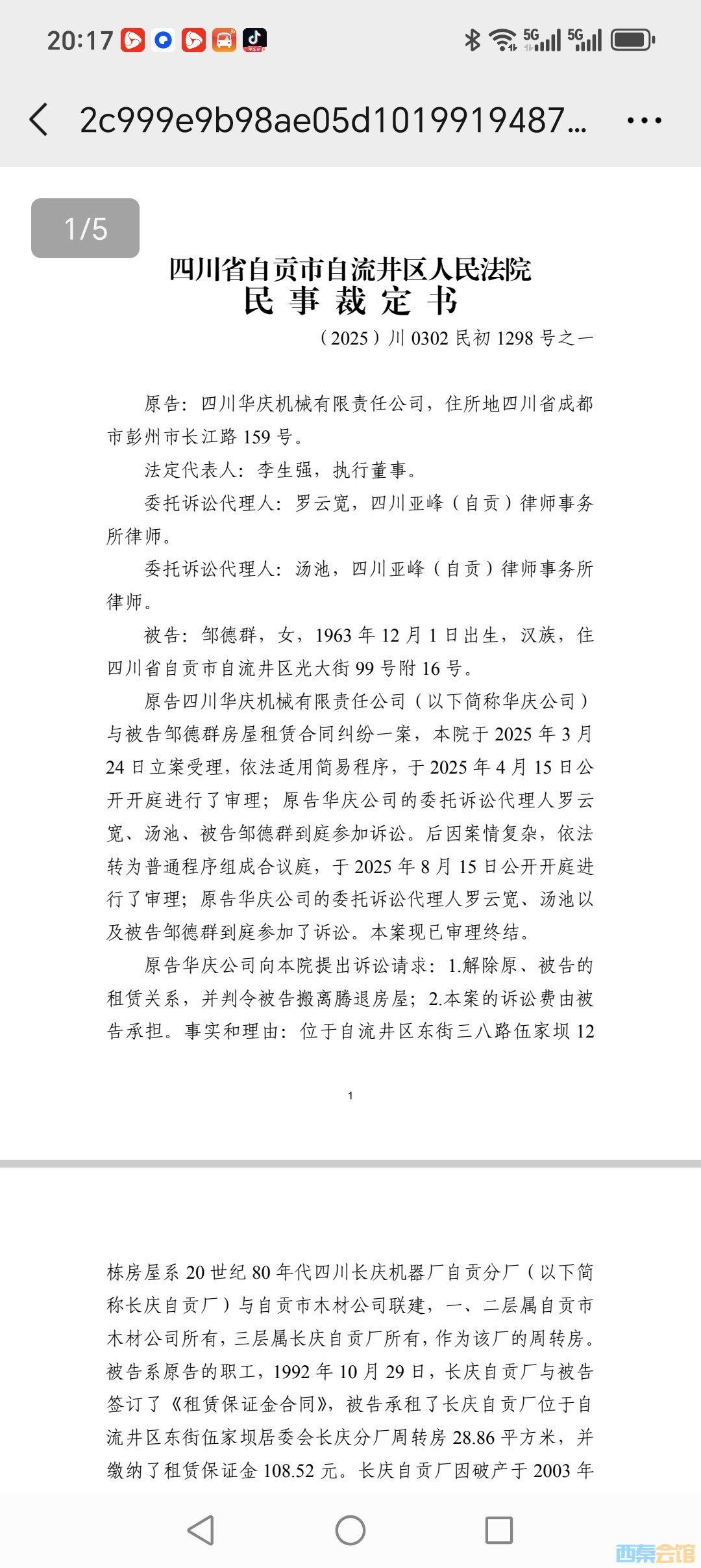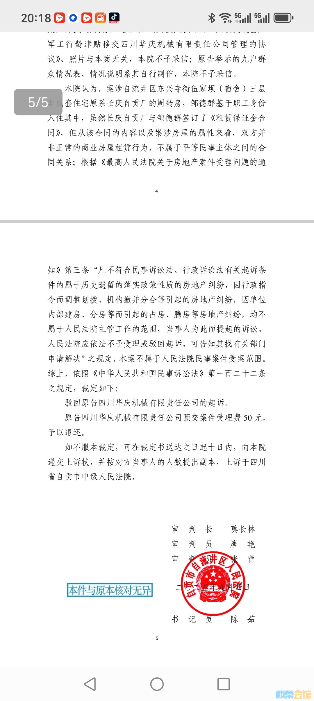 今年,四川华庆机械公司将原长庆自贡分厂九户职工,一纸诉讼状告上了自流井区中级人民法院,诉讼理由这九户职工长期居住在四川华庆机械公司的周转房内,因该方是八零年承建,年久失修,属于危房,居住存在重大安全隐患,劝其搬离,住房产权已被四川华庆机械公司购买,九户职工不属于四川华庆机械公司职工,因此,四川华庆机械公司没有安置这九户职工的义务。按道理说:产权是谁的,所有权就是谁的。这九户职工所住周转房,属于国企改革的历史遗留问题,下岗职工分配的周转房属于遗留问题。九户职工是自贡市刨花板厂分配给职工的周转房,长庆自贡分厂兼并刨花板厂后,依然做为安置九户职工生活,2003年长庆自贡分厂破产,将资产便卖给四川华庆机械公司,问题的关键争议,长庆自贡分厂在便卖资产时,长庆自贡分厂行政并未将便卖资产一事,怎样安置九户职工住房一事书面告之,事隔十多年后,四川华庆机械公司向法院提起诉讼,要赶九户职工走,为了维权,九户职工咨询了自贡市总工会法律维权杨律师,杨律师说,从事实上,这个房子就应该是你们的,法庭上如实陈述周转房分配至现在的事实即可,四川华庆机械公司聘请了三个四川省内的名大律师,阵容强大,势在必胜,这九户职工最高学历为高中,高小。在势力悬殊面前,很多工友认为,这九户职工肯定会败诉,自流井区中级人民法院经过庭审调查核实,驳回四川华庆机械公司诉讼请求,四川华庆机械公司对判决不负,向自贡市中级人民法院提起了对九户职工的诉讼请求,现在,自贡市中级人民法院驳回了四川华庆机械公司的诉讼请求,目前,存在的实际状况,住房是危房,谁来安置九户职工?