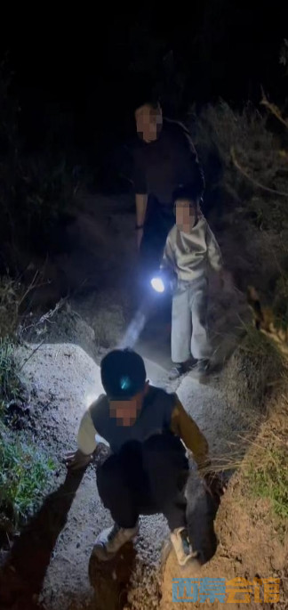 到山下后,发现有一台车,但没有联系方式,李先生带着手电往上走并大声喊话,“我希望他们看到我的光,就把光打到他们那个光源处,因为距离比较远的,看不见人,夜间声音穿透力很强,听见他们说他们已经不敢走了。”李先生通过喊话确认对方在山上迷路,“还带着孩子,因为还有孩子的哭喊声,我就说你们等一会儿我就上来。”