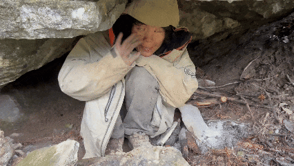 赛事视频显示,17号选手“冷美人”杨朝芹蜷缩在一个高约一米的山洞里,冲着镜头笑着打招呼:“我太幸运了,没有被雨淋到。”其状态略显疲惫。