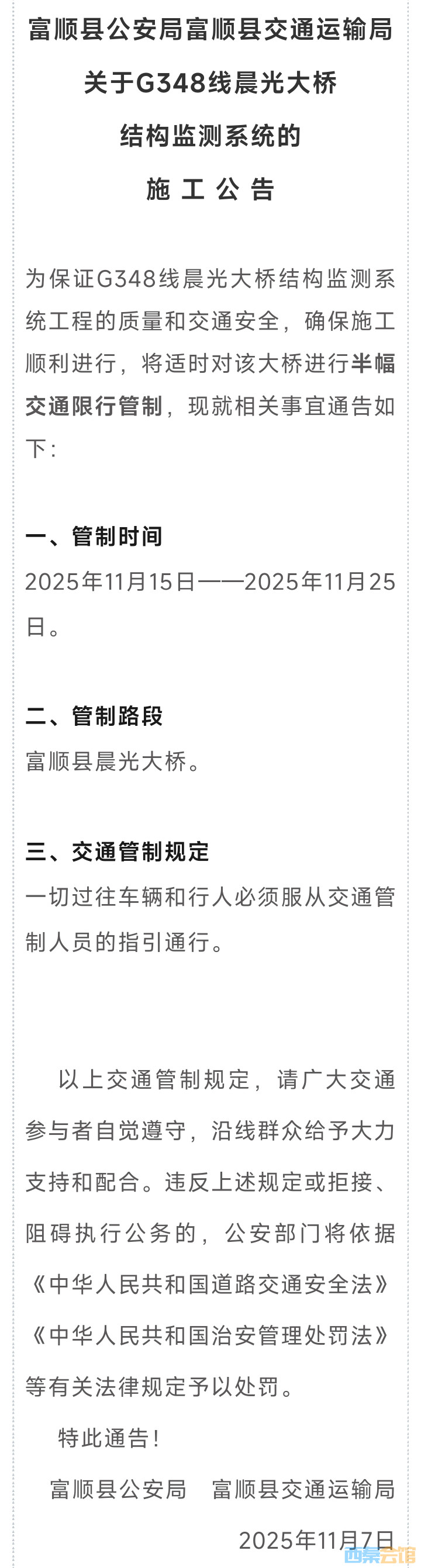 11月15日起 自贡这条路将实行半幅交通限行管制