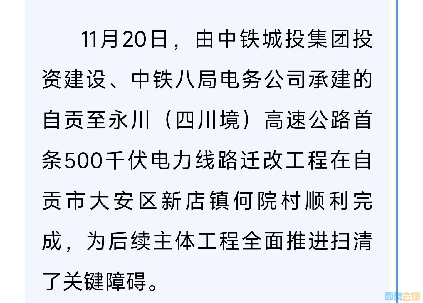 自贡至永川高速首条500千伏电力线路迁改完工
