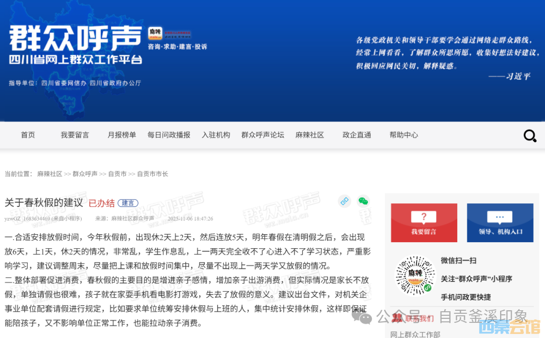 自贡中小学生放秋假,家长没时间带咋办?官方回复——