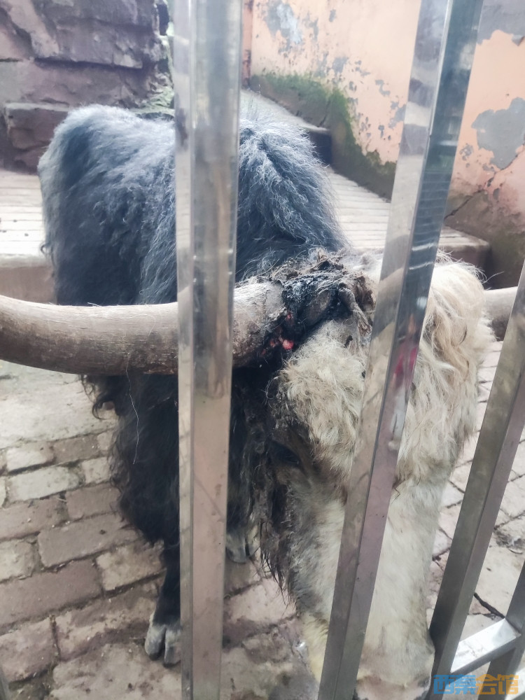 自贡动物园黑牦牛牛角受伤都长蛆了