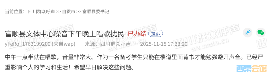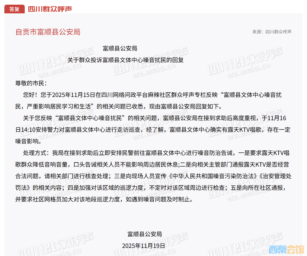 富顺这里噪音扰民,居民不堪其 忧!官方回答——