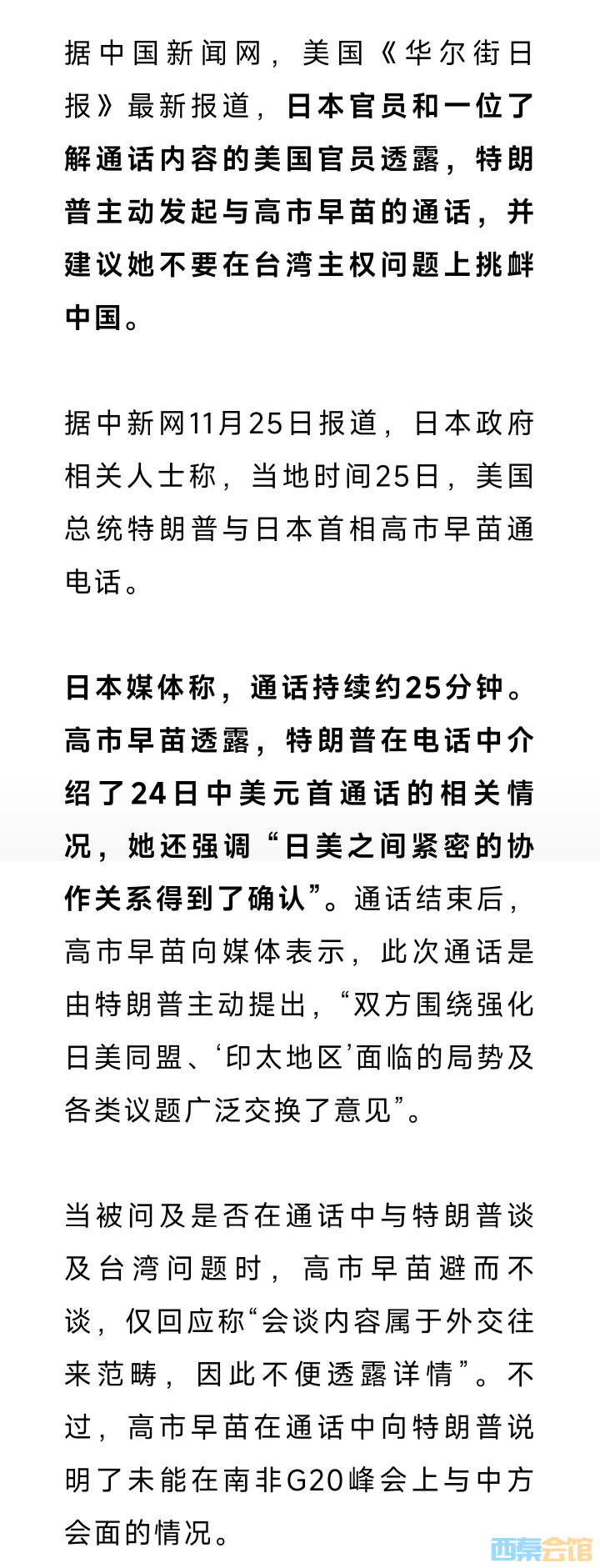 特朗普与高市早苗25分钟通话内容曝光:向其施压不要在台湾问题..