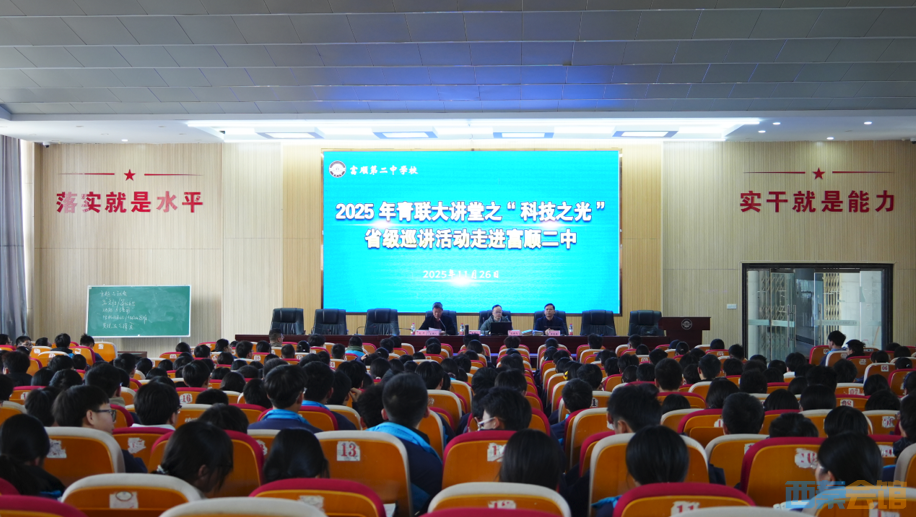 弦歌不辍育桃李,科技赋能向未来。11月26日下午,2025年青联大讲堂之“科技之光”省级巡讲活动走进富顺二中,中国航发涡轮院整机试验部副部长陈鹏飞研究员以“共筑航空梦·强我中国心”为题,为高二年级450余名师生带来了一场兼具专业性与感染力的科普盛宴。本次活动由团省委、省青联主办,共青团自贡市委、共青团富顺县委、县教育体育局和富顺二中承办。