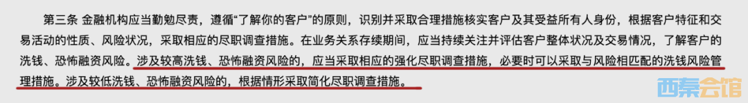 值得一提的是,文件删除了“个人存取现金超5万元需登记资金来源”,与此前的征求意见稿保持了一致。文件规定:金融机构在较高洗钱风险时,了解资金来源和用途。同时,还规定对低风险情形,采取简化措施。
