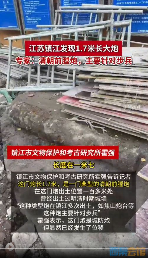 镇江出土清代大炮,六人合力搬不动,已被叉车运往博物馆