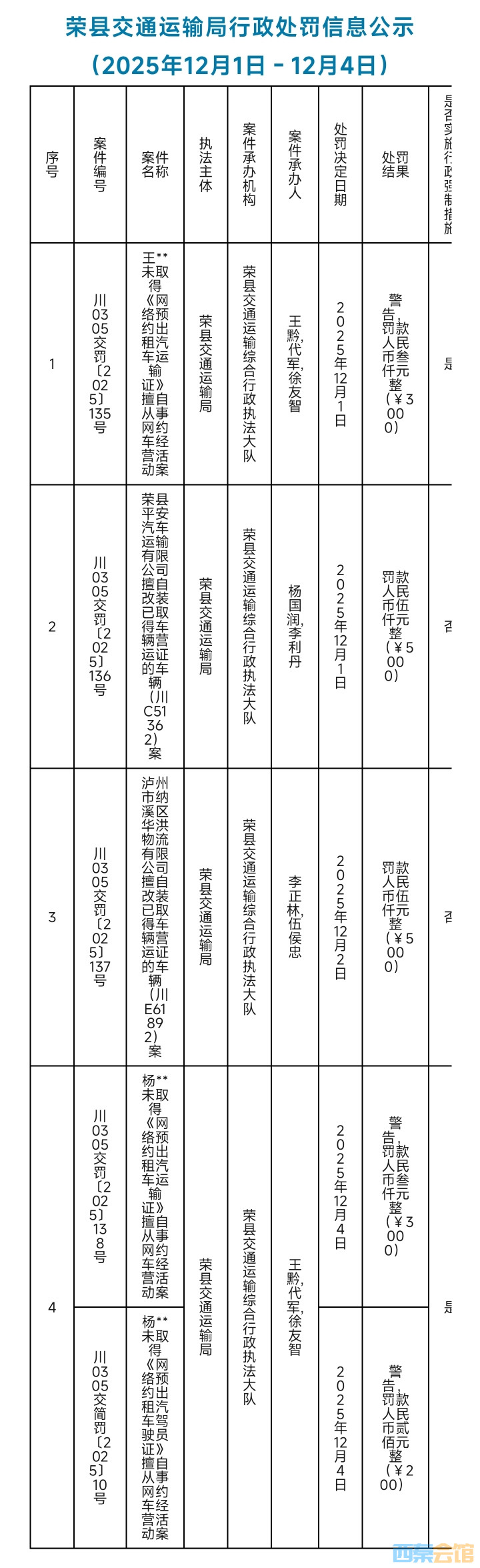 最高罚款5000元!荣县公布4起——