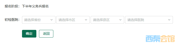 04申请初检医院义务兵报名信息填写完毕并成功提交后,请在当地乡镇武装部或高校征兵工作站工作人员的指导下,点击“我的进度里”的“初检初核”按钮,选择初检医院进行初检,这是参军环节的第一步。 ![]()