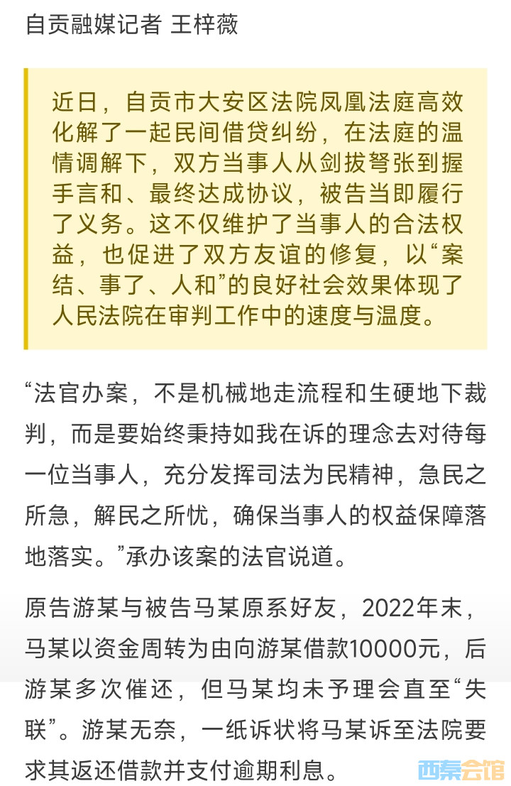 自贡市大安法院温情调解 化解1万元借款纠纷