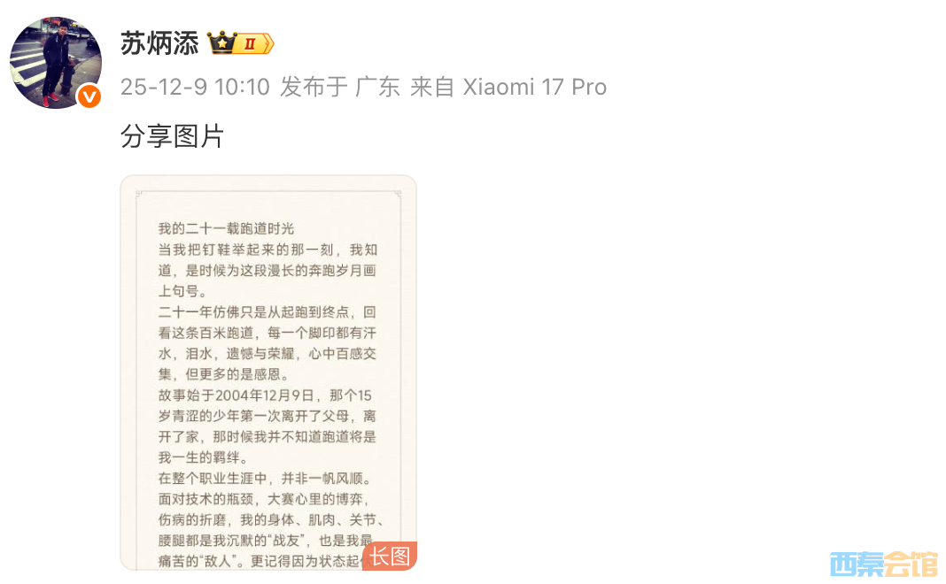 [color=rgba(0, 0, 0, 0.9)]苏炳添在个人社交账号发长文宣布退役,详情如下:[color=rgba(0, 0, 0, 0.9)]