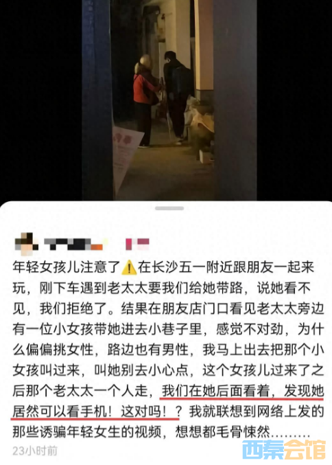 近日,湖南长沙五一广场附近发生的一起求助事件在网络上引发广泛关注。一名女生发布视频称,遇到一位自称失明的老太太要求带路,且对方“专挑女性”,过程中还能使用手机,让她联想到诱骗手段,因而提醒他人小心。该视频迅速传播,甚至有人质疑老太太是“人贩子”。