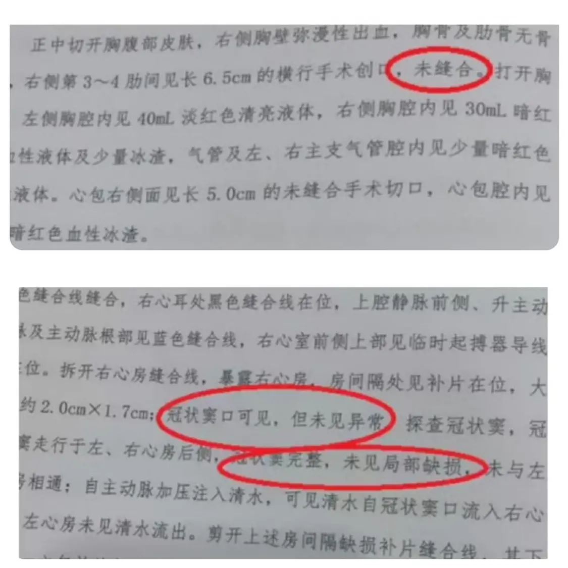 12月20日,小洛熙的妈妈在社交平台公布了小洛熙的部分尸检报告,报告显示小洛熙肋骨间6.5厘米的横行手术创口未缝合,对其心脏未检见冠状窦型房间隔缺损。