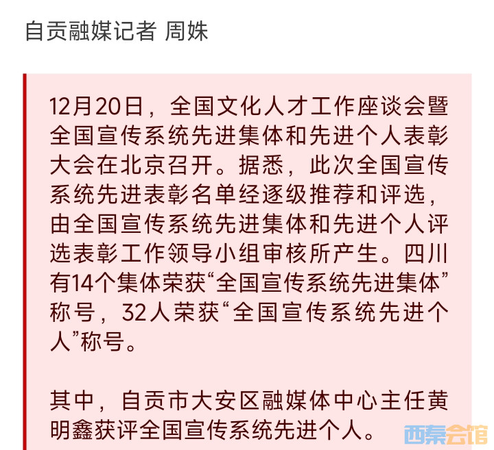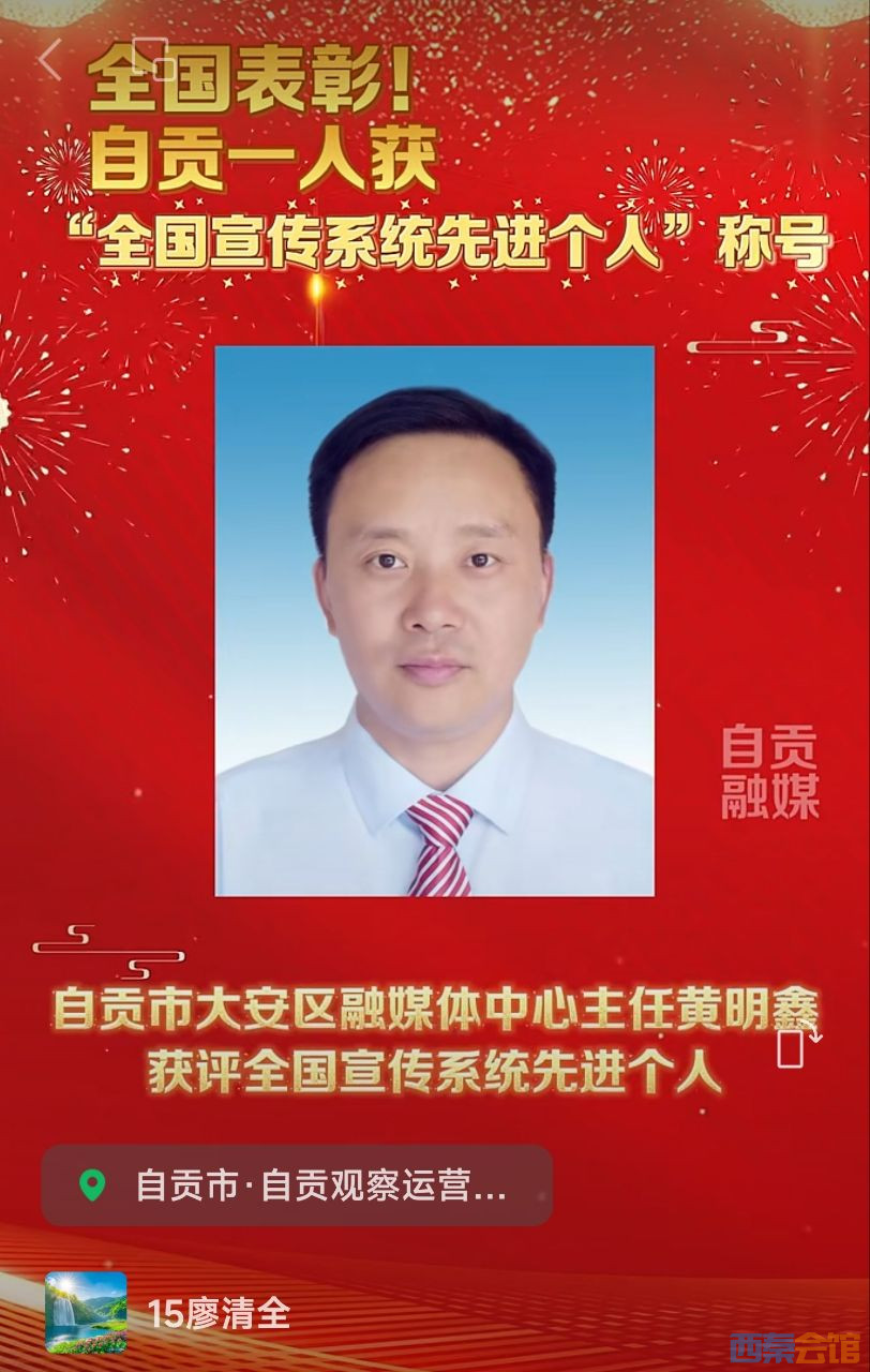 全国表彰!自贡市大安区融媒体中心主任黄明鑫获“全国宣传系统先进个人”称号