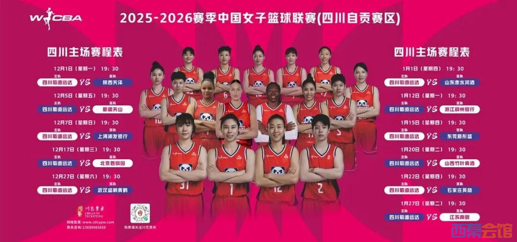 随着2025-2026赛季WCBA联赛的深入进行,各支球队的激烈对抗与精彩表现持续点燃球迷热情。2026年1月12日,四川蜀道远达将迎来同浙江稠州银行的焦点对决,为满足广大球迷的观赛需求,四川主场门票将正式开启销售!