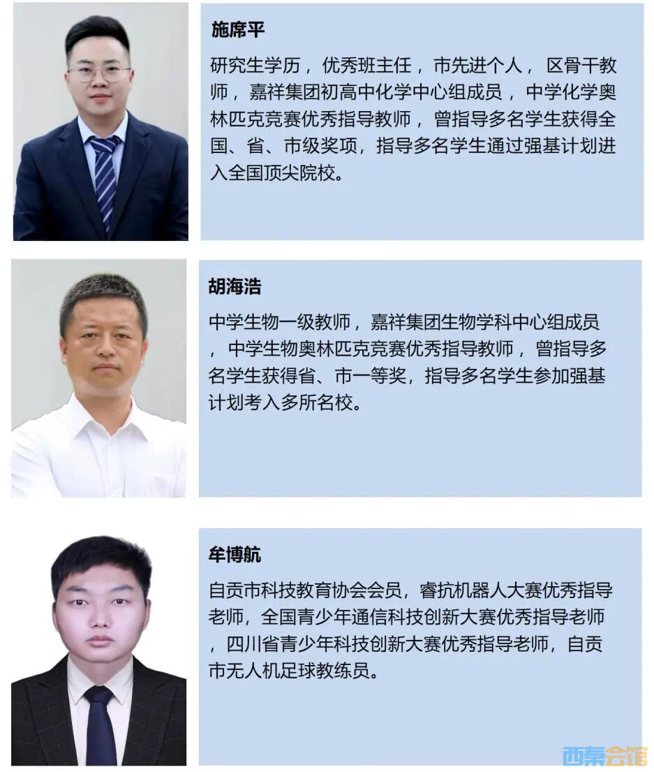 项目班师资将由集团选派的优秀骨干教师和自贡嘉祥优秀教师共同承担常规教学任务,让自贡学子在家门口享受“顶配师资”。同时,项目班共享集团创新学校顶尖专职教练以及清华、北大等高校专家资源,与自贡嘉祥自身38人专业竞赛教练团队,共同组成顶尖的拔创教练团队。推行“1+N”导师制,全面保障课程建设与落地。