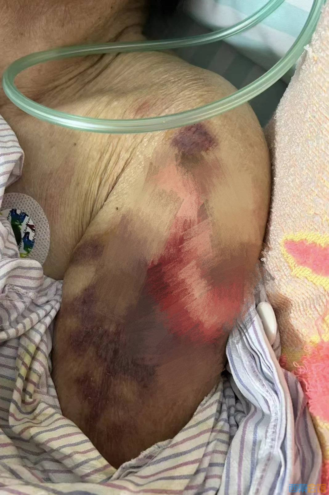 张女士介绍,家人发现1月12日晚至13日凌晨,老人彻夜未眠、面色苍白,早上陷入昏迷状态。“当时没有往烫伤方面去想,以为是她身体疾病导致不舒服,想把她送去医院治疗,因此跟曹阿姨说不需要照护服务了,13日上午给她结算了几天工资她就走了。中午到医院换病号服时,才发现外婆左大臂有一大片烫伤,都破皮了。”