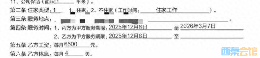 记者从张女士提供的家政服务居间合同看到,服务期限为2025年12月8日至2026年3月7日,工资为6500元/月。“最开始是另一个阿姨,因她家中有事,工作1个多月就辞职了,家政公司又安排了这位曹阿姨过来。她是1月8日才来的,和老人单独住在一个房间进行照护,没想到工作不到5天就出事了。”