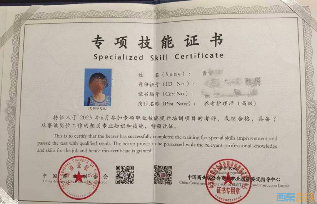 对于曹女士的专业资质,杨女士回应:“她经过了我们的专业培训,且持有养老护理师的专项技能证书,这些我们都提供给客户查证了。曹阿姨从事这个行业,也有好几年的工作经验,这些公司都做过背调。”