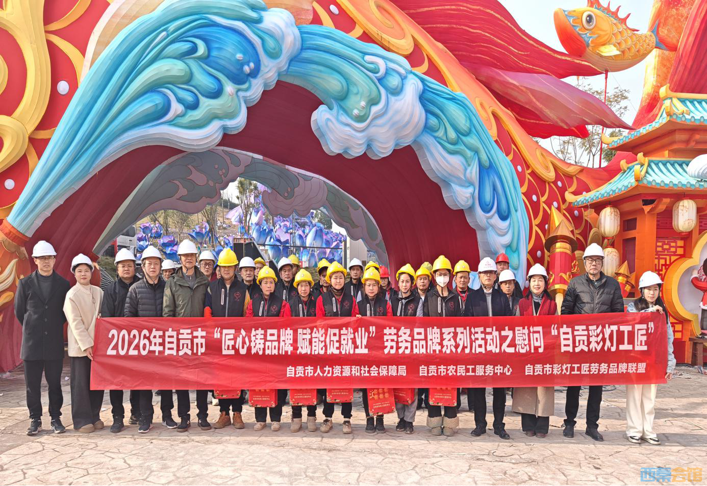 为传递党委政府对农民工的关心关爱,向奋战在工作一线的彩灯工匠们表示敬意和慰问,1月13日,市人力资源社会保障局联合市农民工服务中心、“自贡彩灯工匠”劳务品牌联盟及其部分成员单位组成慰问组,来到中华彩灯大世界组织开展2026年“匠心铸品牌 赋能促就业”劳务品牌慰问“自贡彩灯工匠”活动。