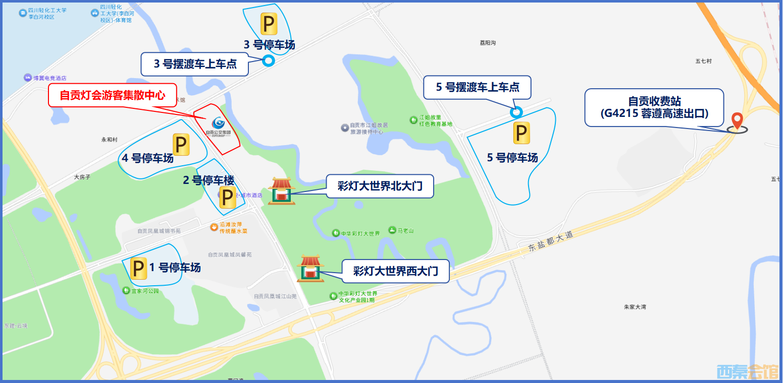温馨提示:1号、2号、4号停车场离景区大门较近,可步行入园。5号停车场靠近高速,返程自驾更快捷。