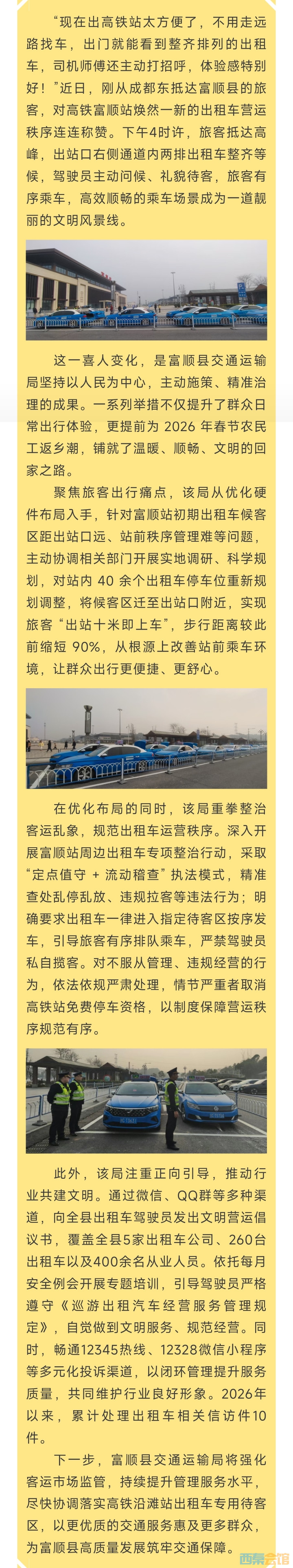 告别“找车绕路”!高铁富顺站出租车候客区换新 返乡人秒速乘车超省心